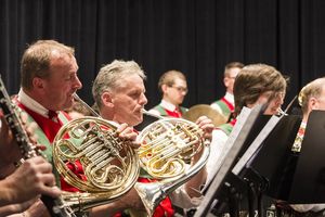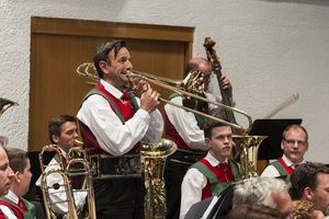 Nach der Pause entführte uns Robert Allmend auf eine „Zigeunerhochzeit“, wo melan-cholische und auch euphorische Melodien den Ton angaben. Martin Waldboth konnte mit seinem Solostück „A Spring Lullaby“, geschrieben von Andrew Pearce, nicht nur sein Können unter Beweis stellen, sondern auch alle Anwesen-den verzaubern. Nachdem uns „Winterland“ von Kees Vlak mit in den hohen Norden genommen hatte, holte uns „Mame Medley“ aus dem gleichnamigen Musical von Jerry Herman in den Süden der Vereinigten Staaten von Amerika.